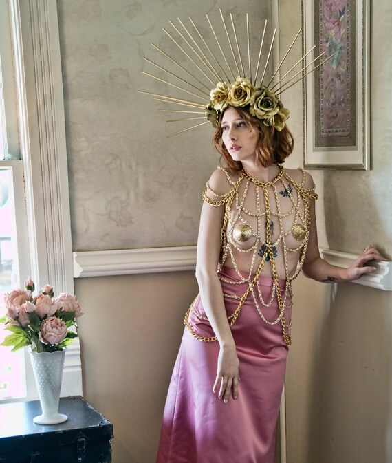 Gold Body Chain Necklace Rihanna Beyonce By Budgetstyle On Etsy