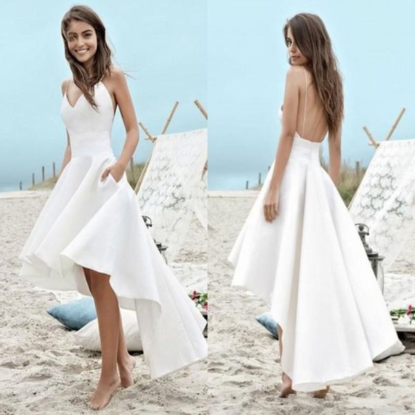 Cheap White Under 100 Summer Wedding Dresses 2019 A Line Beach Boho Bridal Gowns High Low Backless Spaghetti Straps Holiday Gowns Bc0354 Uk 2019 From