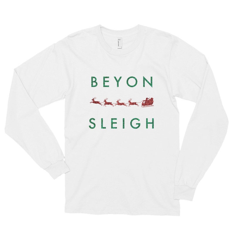Beyon Sleigh Long Sleeved Tee Beyonce Christmas Christmas Tee Red And Green Glitter Print American Apparel Made In Usa