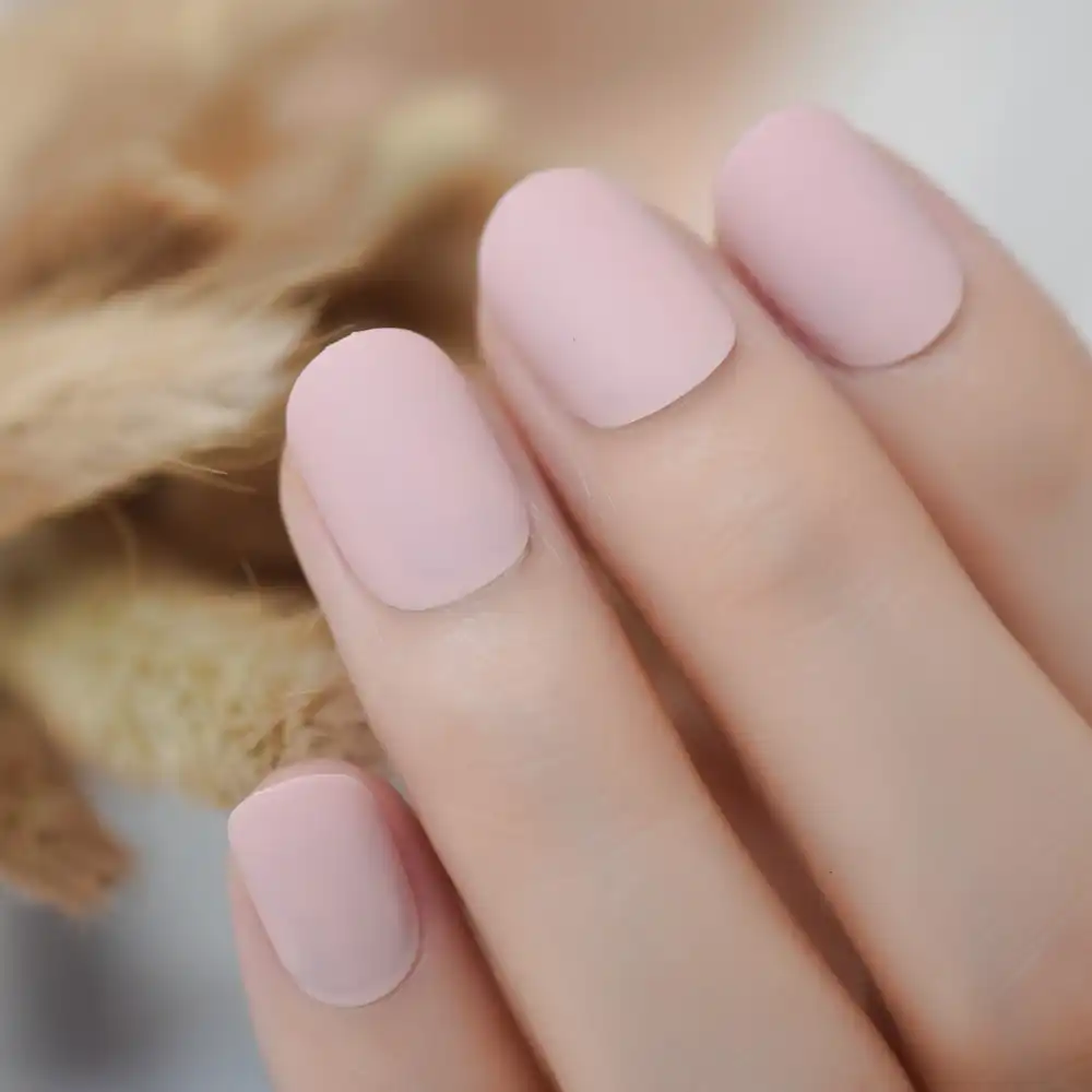 Short Round Light Pink Artificial Nail Art Tips Matte Lovely Girl
