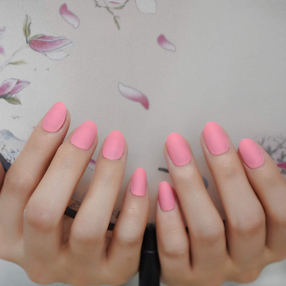 Amazon Com Deep Pink Matte Fake Nails Korea Short Acrylic Nail