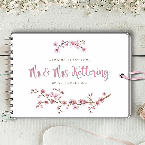 Personalised Wedding Guest Book Cherry Blossom Blank Message