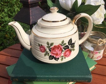 Vtg Sadler Teapot 5 Cup 1593 Roses Cream Porcelain Floral