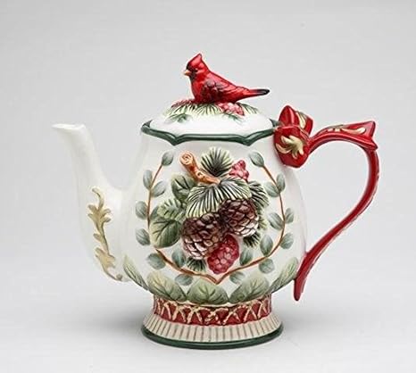 Elegant Evergreen Holiday Teapot With Red Cardinal On Top Collectible