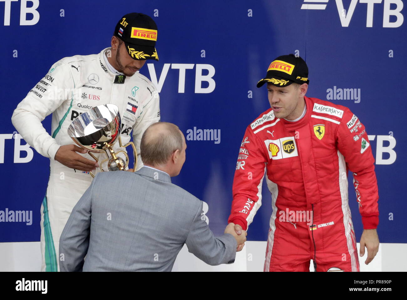 Mercedes star hamilton put himself 50 points clear at the top of the drivers championship after winning in sochi. The russian president warned the f1 ace to avoid spraying him with champagne. Vladimir putin meets lewis hamilton.
