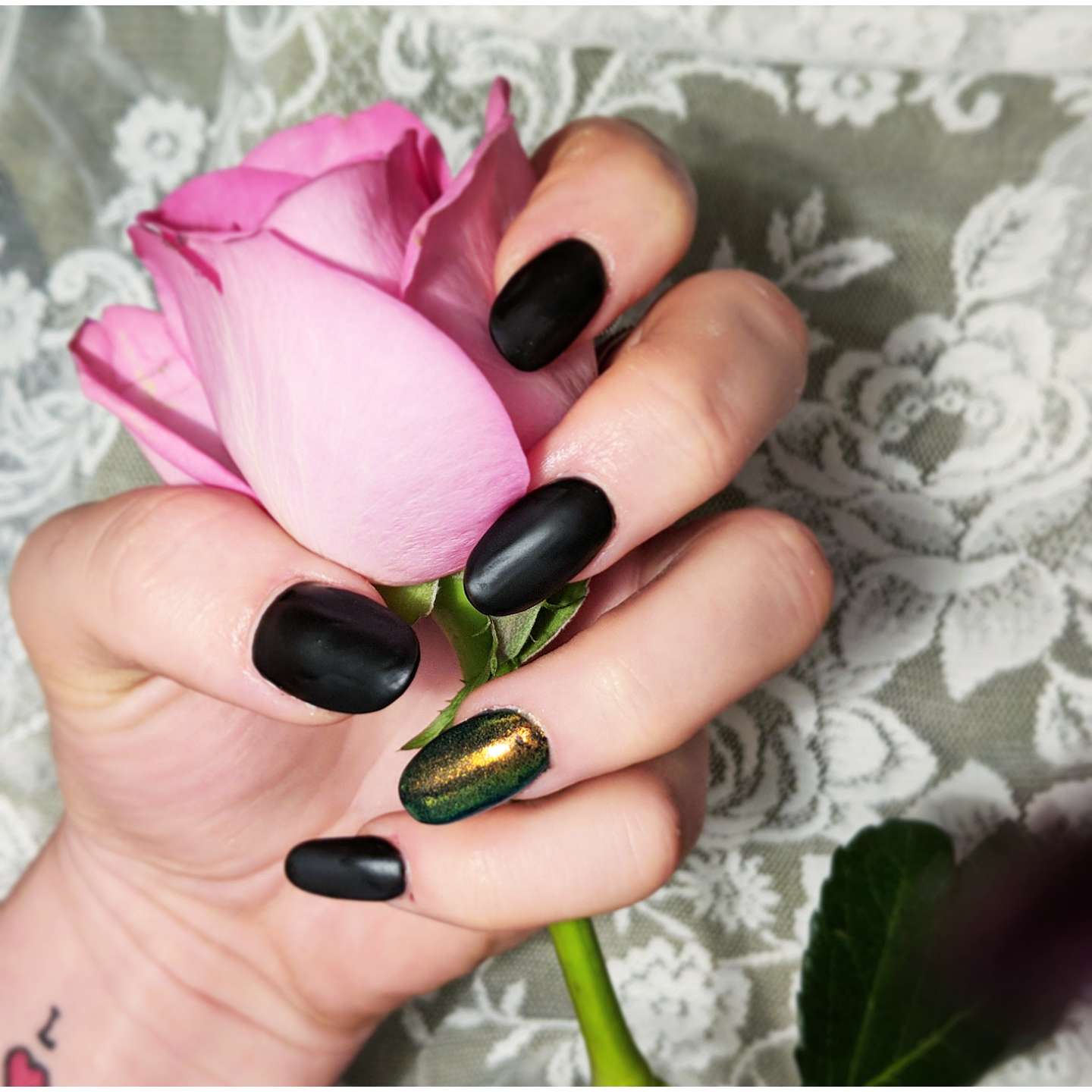 Somibeauty Matte Black Extensions With Chrome Accent Nail So