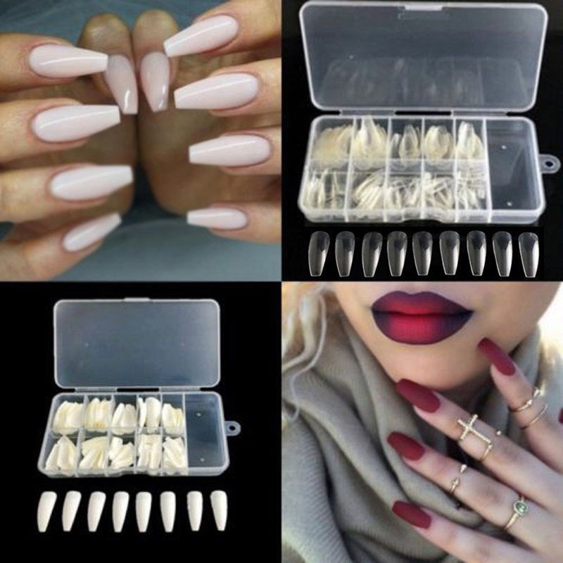 Details About 100 500pcs Half Cover False Fake Nails Long Ballerina Coffin Shape Diy Nail Art