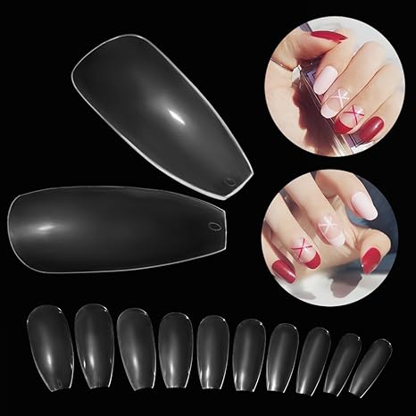 500pcs Long Ballerina Coffin Shape Half Cover False Nail Acrylic Nails Art Tip 10 Sizes Fake Nail Tips Salons Or Diy At Home Clear